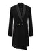 Blazer noir croisé oversize en bi-matière avec épaulettes large , 2 boutons, poche passepoilée satinée dans le dos. Détail de poche satinée.
